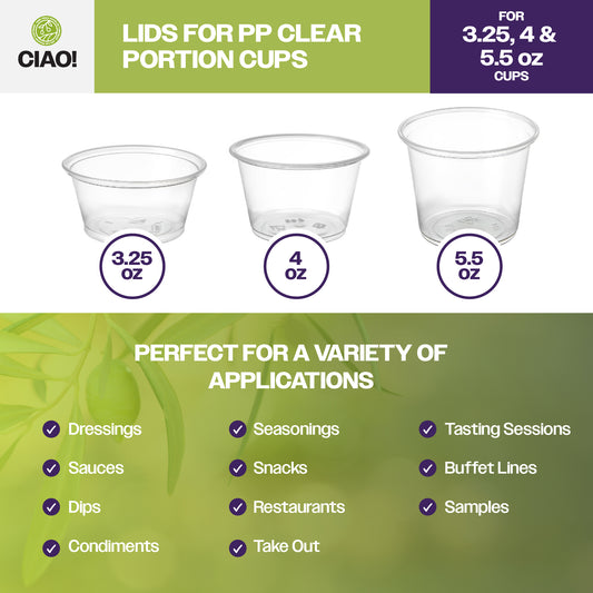 CIAO! Clear PET Lid FOR 3.25, 4 and 5.5OZ Portion Cups (Case of 2,500)