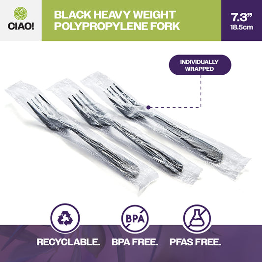 CIAO! Heavy Weight Black Fork Polypropylene Individually Wrapped (Case of 1,000)