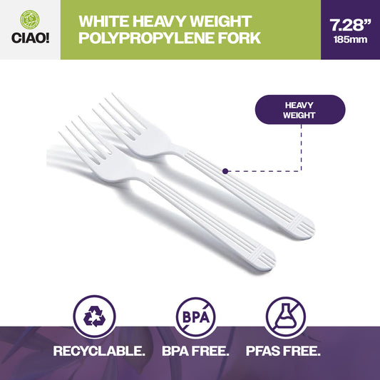 CIAO! Heavy Weight Disposable White Fork Polypropylene (Case of 1,000)