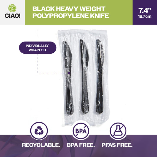 CIAO! Heavy Weight Black Knife Polypropylene Individually Wrapped (Case of 1,000)