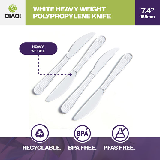 CIAO! Heavy Weight Disposable White Knife Polypropylene (Case of 1,000)