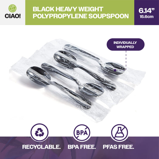 CIAO! Heavy Weight Black Soupspoons Polypropylene Individually Wrapped (Case of 1,000)