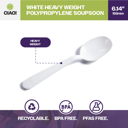 CIAO! Heavy Weight Disposable White Soupspoons Polypropylene (Case of 1,000)