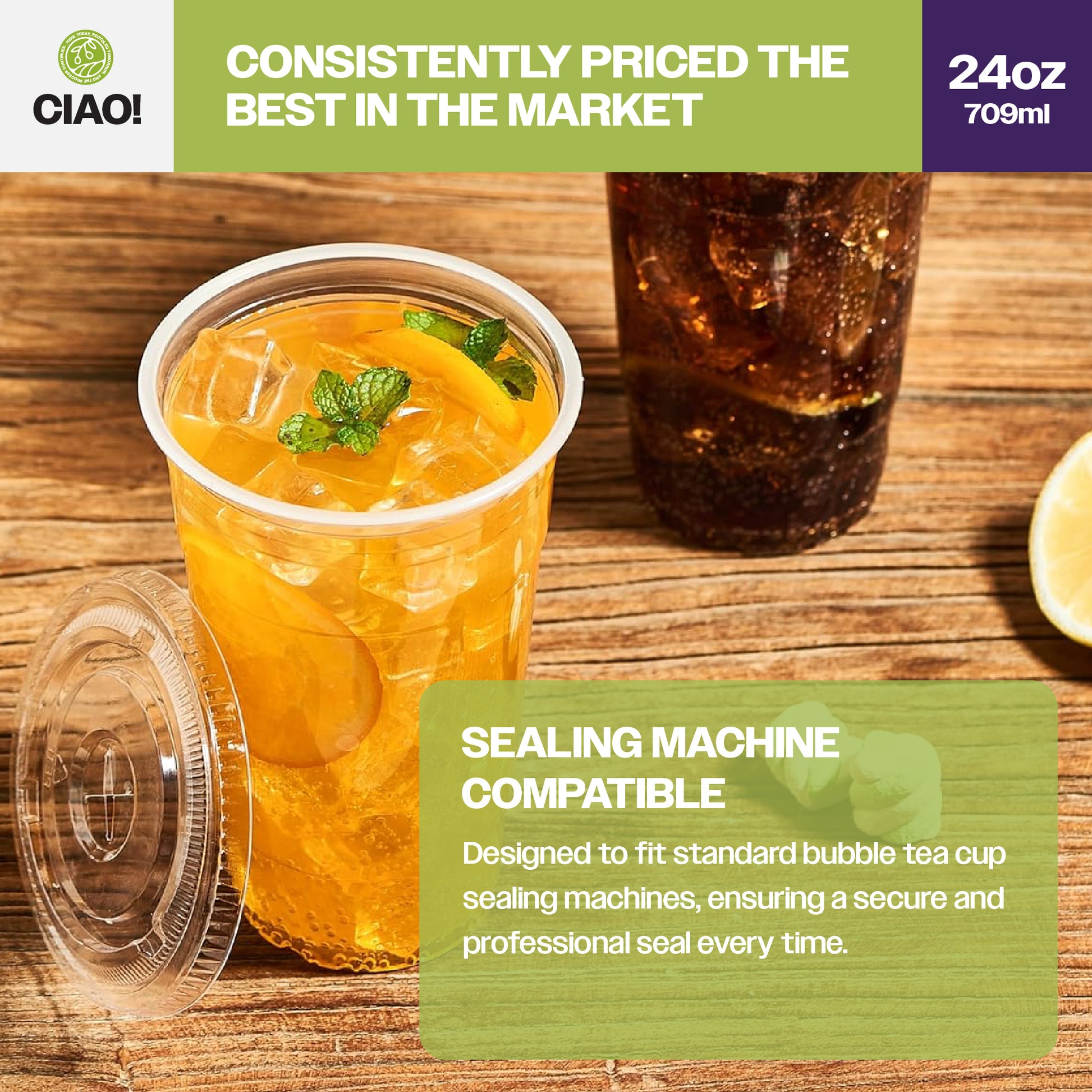 CIAO! 24OZ PP Plastic Cold Drink Cup, Great for Smoothies, Iced Coffee, Boba and Cold Drinks, 98mm (Case of 600)
