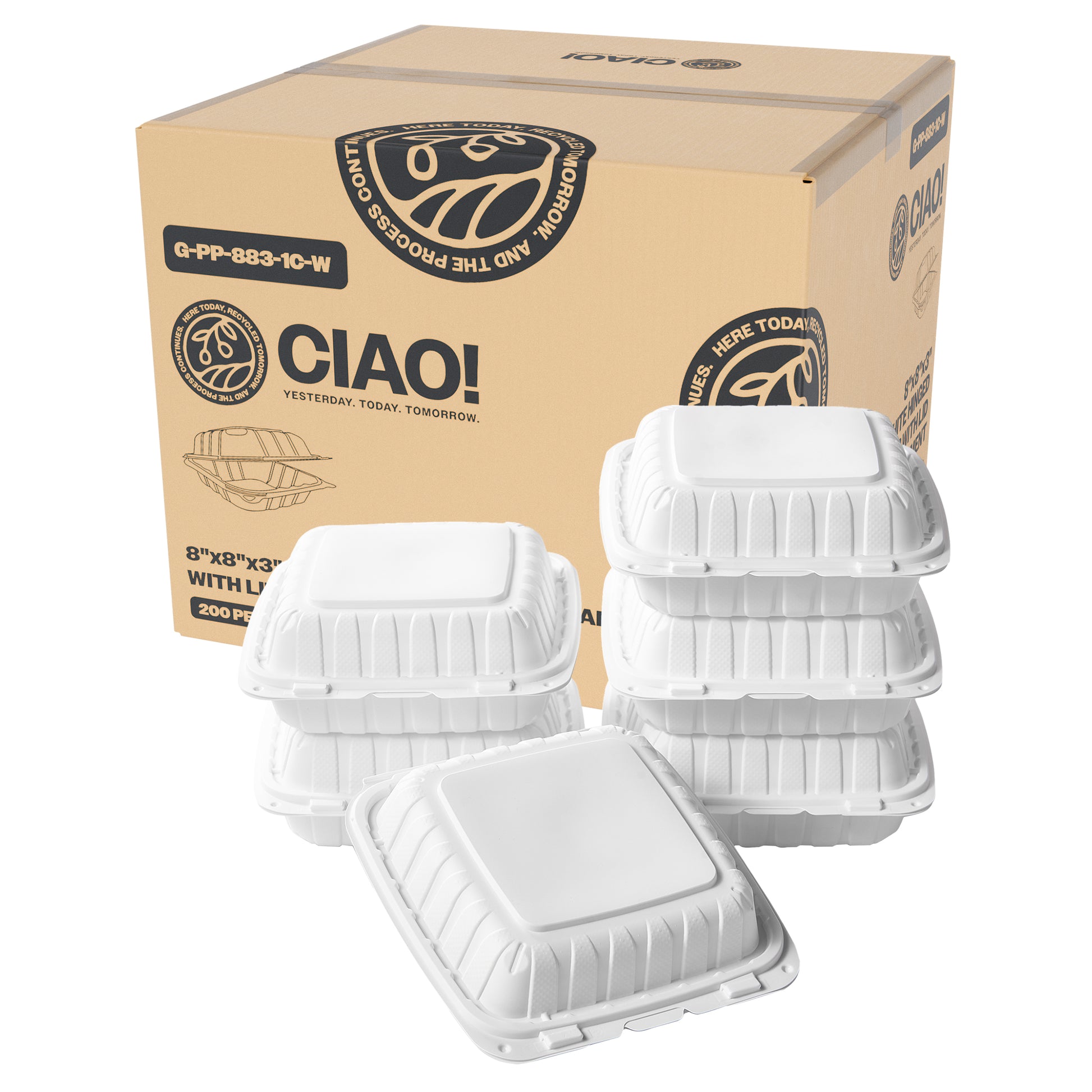 CIAO! 8"x8"x3" MFPP White Hinged Container – Sleek, Sturdy, and Versatile