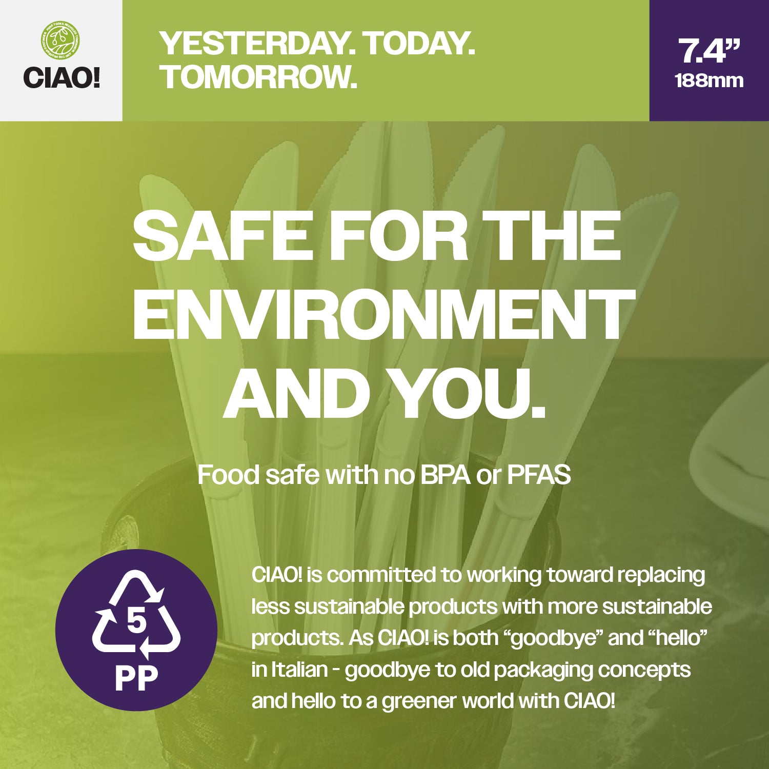 Crafted from durable, BPA-free polypropylene (PP), each knife delivers a solid, sturdy feel that won’t snap under pressure. With a 7.4" length, they provide a comfortable grip and better leverage for cutting through tougher foods. The individually wrapped packaging ensures cleanliness, making them perfect for takeout orders, catering, meal kits, and more.