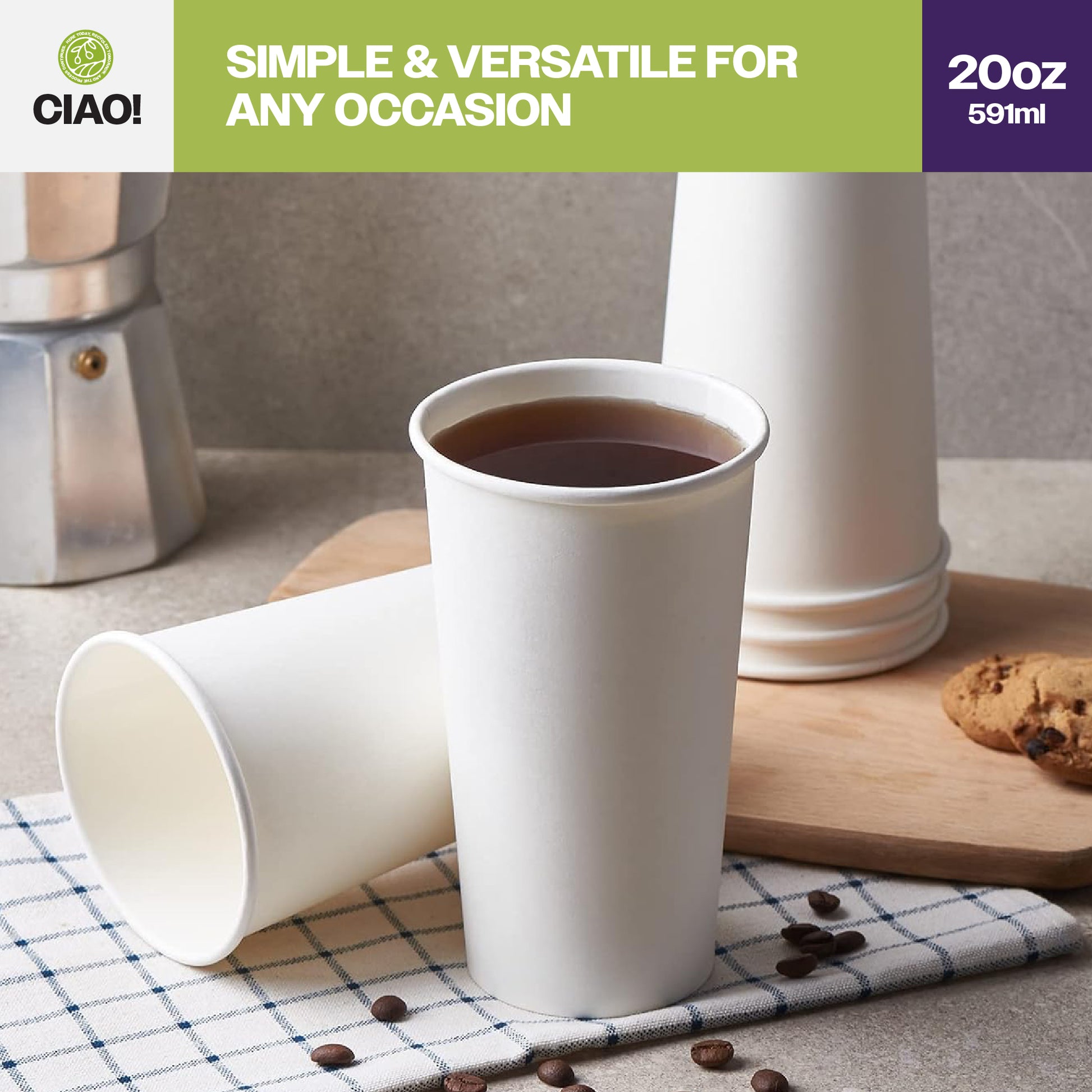 CIAO! 20 oz Hot Paper Cups – Generously Sized for Hot Beverages