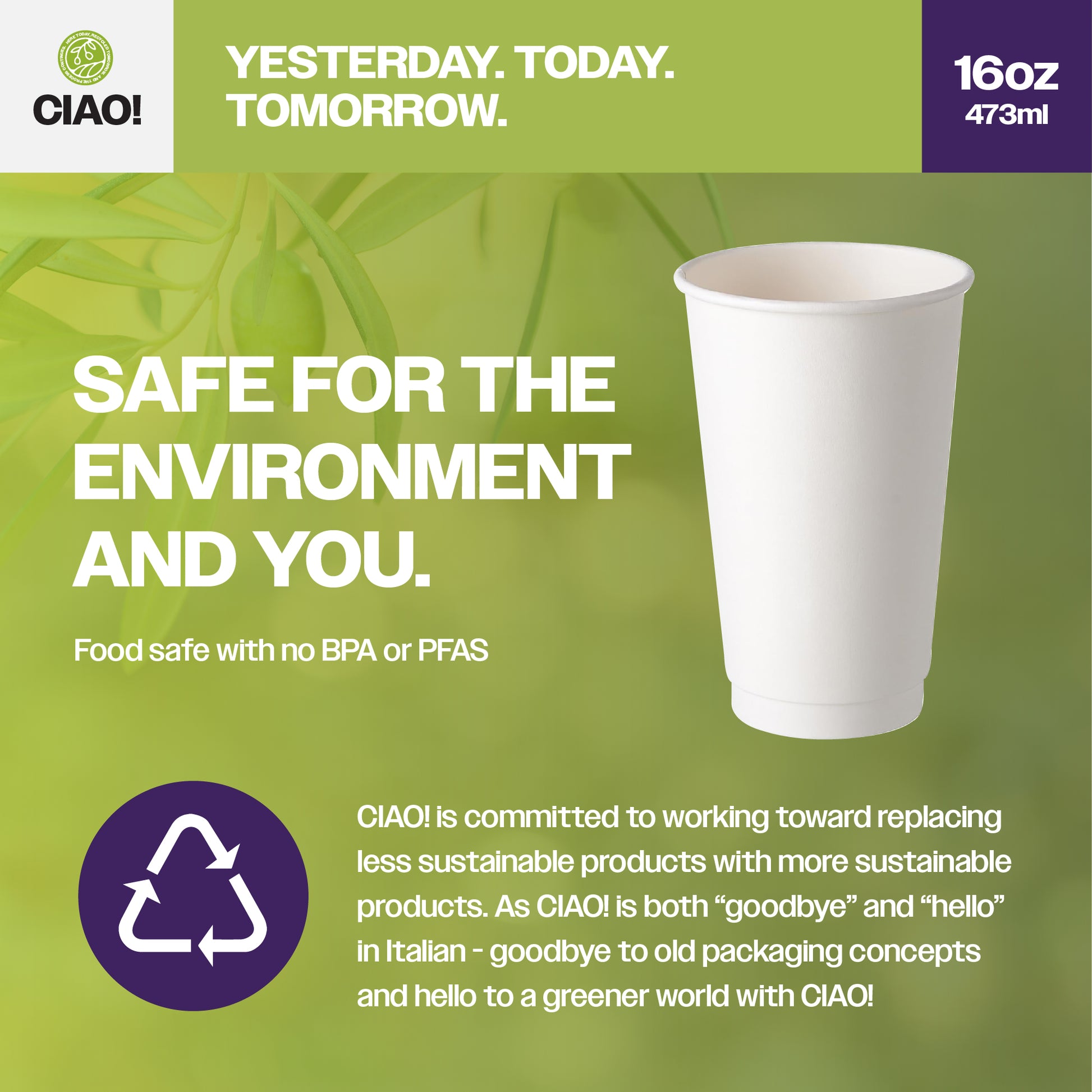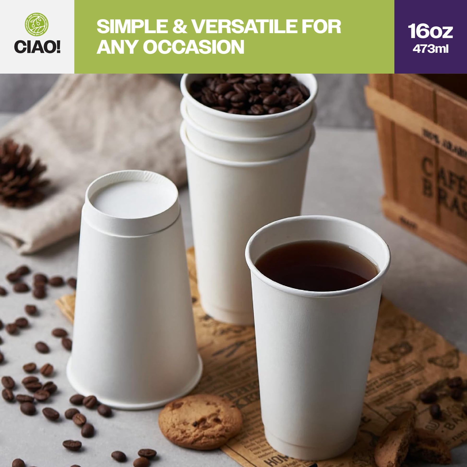 CIAO! 16 oz Insulated Double Wall Paper Hot Cup – Perfect for Hot Beverages